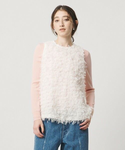 チュールと抄繊糸を撚糸した特殊な意匠糸で、シャーリング刺繍をほどこしファーのような毛足感を表現しました。