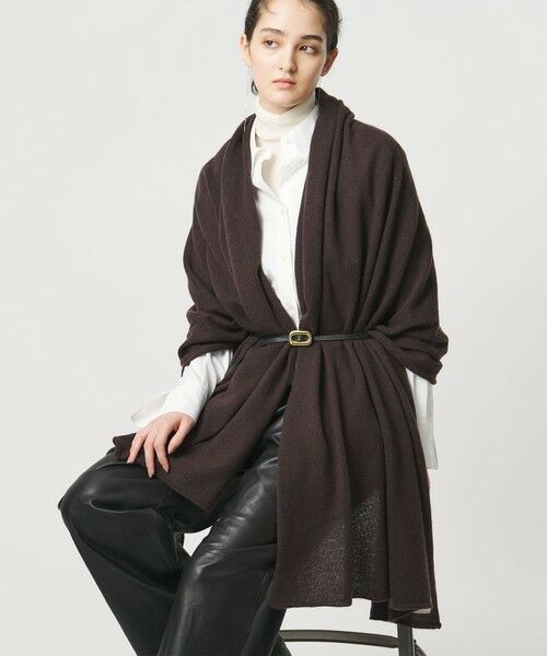 肩からざっくりとかけてカーディガンのように纏ったり、首元にラフに巻いても雰囲気がでます。