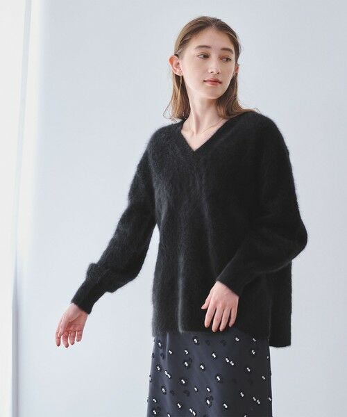 着回しのしやすいボックスシルエットでデコルテ周りを美しく見せてくれるVネックニット。