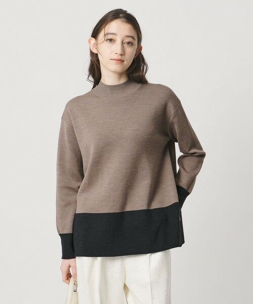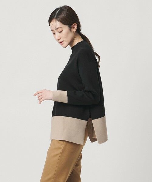 ヒップが隠れる着丈でゆったりとしたテントラインシルエットのハイネックニット。