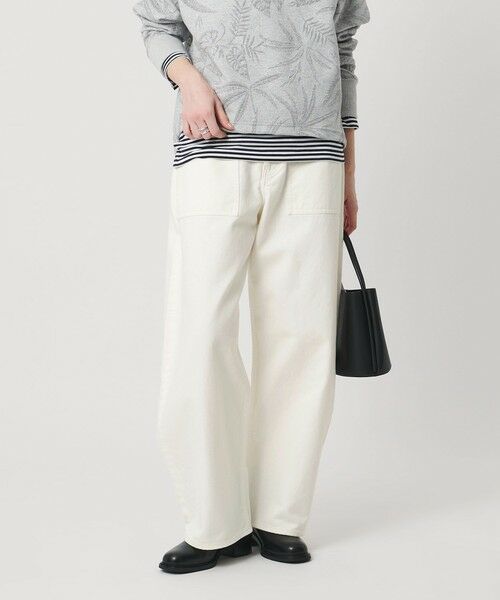 スタイルアップが叶うハイウエストのセミワイドラインで、ベーシックな5ポケットデニムよりも、しなやかでフェミニンな印象に。
