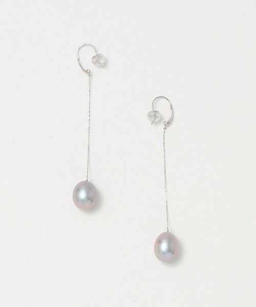 淡いグレーのヴェールを纏った淡水パールが、耳元で優雅に揺れるデザイン。