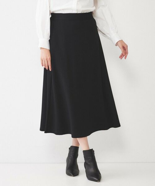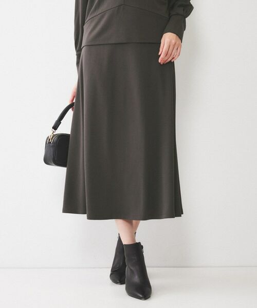 フロントの腰回りがスッキリしているので、トップスインでもアウトでも様になる汎用性のあるAラインスカート。