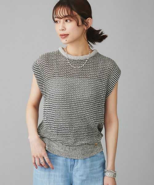 身頃と袖口は細いボーダーのような見え感に、裾はあえて異なる編み地で、1着の存在感が出るように仕上げた1枚。