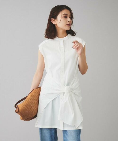 シャツを巻いたように見えるデザインがポイントのフレンチスリーブシャツです。