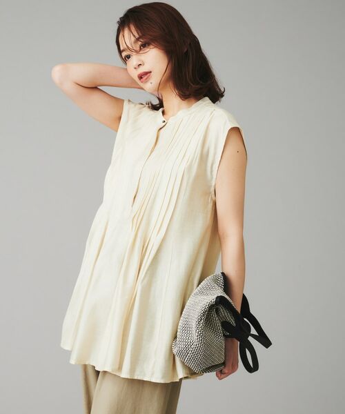 胸元のタックディテールと切り替えで、身頃はすっきりと、腰回りに向かってフレアに広がる女性らしいシルエットに仕上げました。