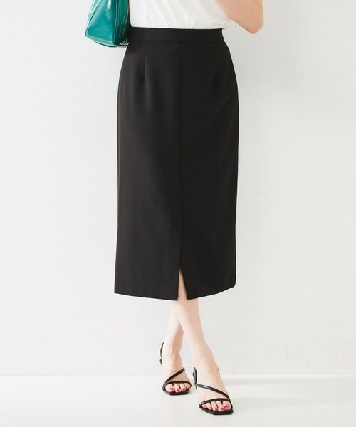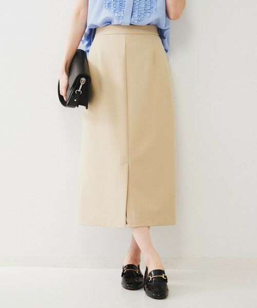 【デザイン】タテとヨコにストレッチが効いており、裾スリットとポケットデザインがアクセントのナロースカートです。ストレッチが効いているのでナローシルエットながらも着心地がよく、裾のスリットで大人カジュアルに着用いただけます。後ろウエストもゴム仕様の着用しやすいスカートです。【素材感】縦にも横にも伸びる2WAYツイル素材。少し肉厚でボトムにちょうど良い素材です。上品な微光沢が特徴です。【仕様】・ポケットなし・後ろファスナー・裏地あり■こちらの商品はUNTITLED店舗では取り扱いがございませんのでお問い合わせはコールセンターまで。※照明の関係により、実際よりも色味が違って見える場合があります。また、パソコン・スマートフォンなどの環境により、若干製品と画像のカラーが異なる場合もございます。本商品は、ご注文確定後に取り寄せにてお客様への出荷手配をさせていただきますので、お届けまでに7~10日前後かかる場合がございます。また、商品は他社サイトと在庫を共有しているため、ご注文いただいた商品が欠品となり、キャンセルとなる場合がございます。