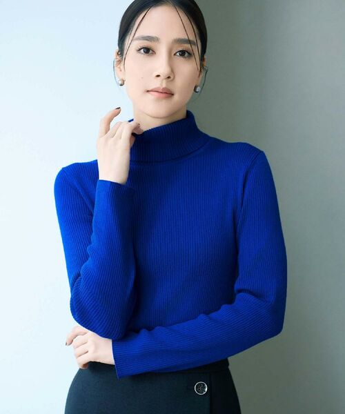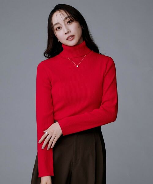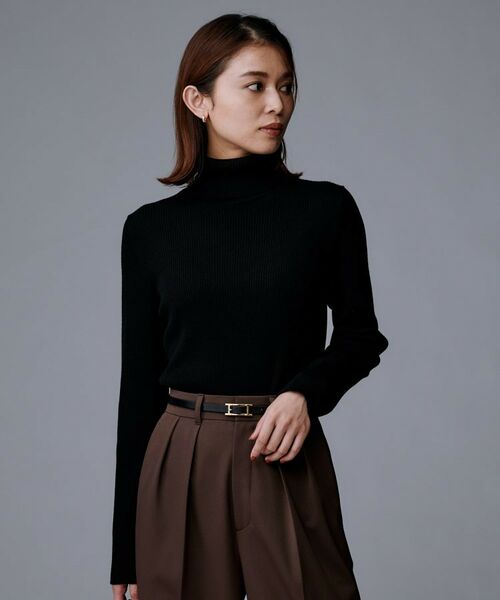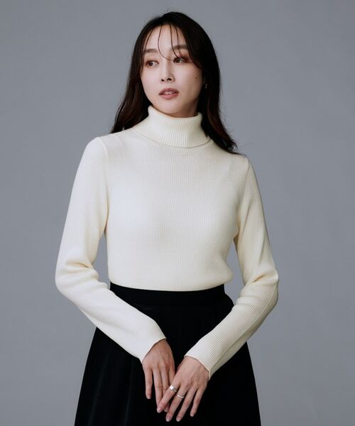 細リブのタートルネックプルオーバーです。