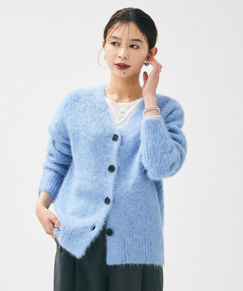 滑らかな肌触りが魅力のヘアリー素材を贅沢に使用し、リラックスした雰囲気が様々なスタイルに合わせやすいニットアウターライクな肉感のVネックカーディガン。