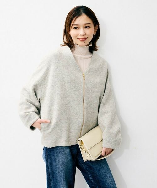 Vネックが特徴的なシンプルで上品なブルゾン。