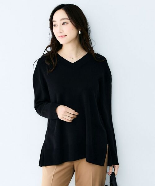 シンプルながらも着回し力のあるVネックニット。