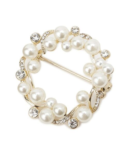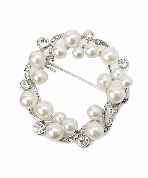 スーツやワンピースを華やかに彩るフェイクパールとビジューのブローチ。