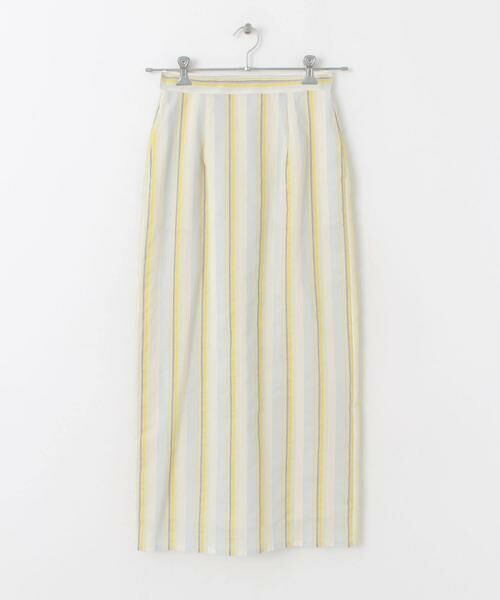 春夏ムード漂う明るいマルチカラーストライプが映えるIラインスカート。ほんのり感じる微光沢と表面感に、少しシワ感のある軽い生地で、夏場もさらっとお召し頂けます。後ろの裾はベンツ開きになっており、足捌きの良いデザイン。1枚で華やか、爽やかな印象に仕上がる、大人の柄スカートです。