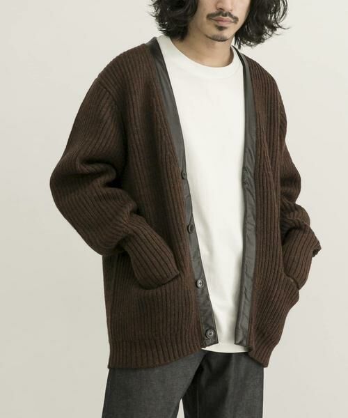 本牛革のパイピンクがアクセントのアウターカーディガン。