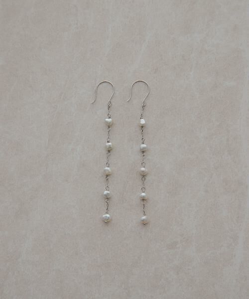 小さめのアコヤケシパールが連なったロングピアス。チェーン、フックともにホワイトゴールドですっきりと洗練された印象に。
