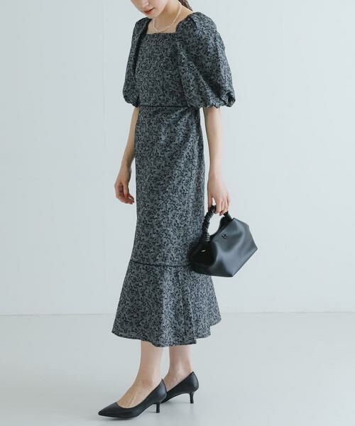 しっかりとウエストマークされた女性らしいしなやかなマーメイドシルエットに、ボリューミーなパフスリーブとスクエアネックのバランスがクラシカルな印象に。