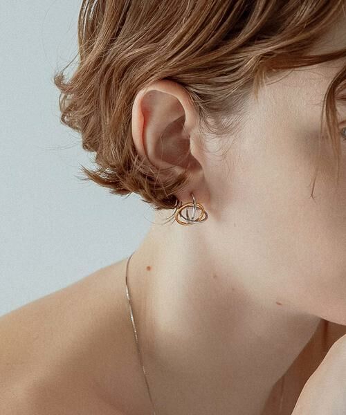 3本のラインがクロスになり、宇宙の様な雰囲気を感じる立体ピアス。カラーはゴールドとシルバーのミックスで合わせるネックレスを選びません。