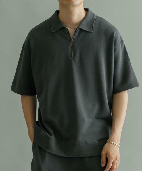 ポロ衿仕様のネックデザインにハーフジップ開閉デティールを加えた旬な一着。