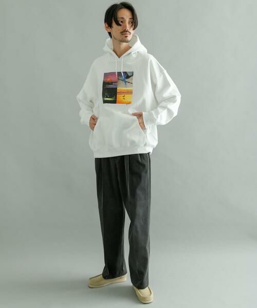 撮影者自身のフィルターとフィルムの特性を活かし、色で溢れるロサンゼルスの街を切り取ったフォトデザインをフロントにあしらいました。オーバーなサイジングとシンプルなデザインがスタイリングに馴染みます。