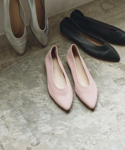 リアルレザーのマットな質感が上品な印象で、ポインテッドトゥが甘さを抑えたシャープな足元を演出。