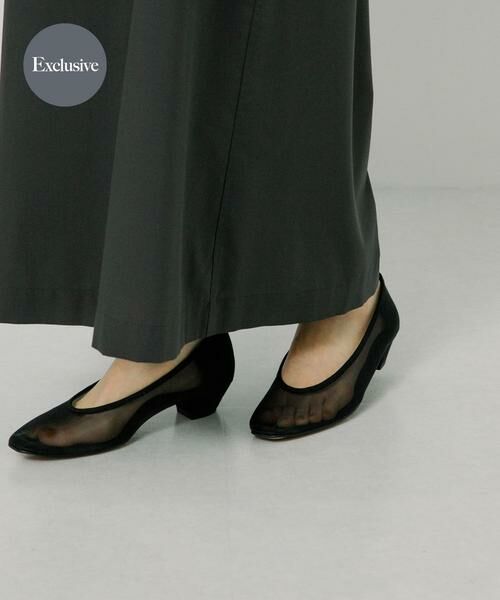 甘さを抑えたスクエアトゥや透け感がスッキリとした足元を演出。