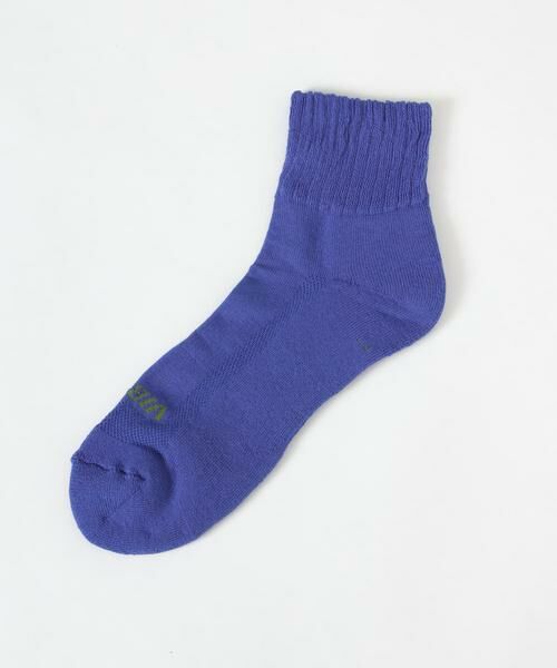 リブは二重にしてボリュームがあり、圧迫が無く、締め付けが少なくなっています。 裏側はつま先/足底/かかとはタオル生地(パイル仕様)でクッション性があり、フカフカの履き心地です。 つま先と両サイドにコの字型のメッシュ生地になっているので、通気性がよく、涼しく着用可能です。 特につま先の指の間は汗をかきやすい箇所なので、メッシュ部分を広く取り、両サイドの一部をメッシュ生地に変えることで風をたくさん送り込むようになっています。