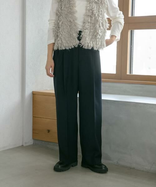 ボリューム感をきれいに魅せるダブルプリーツのパンツ。
