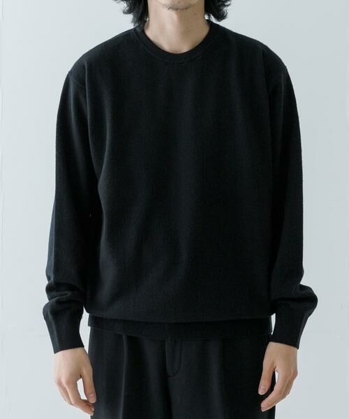 糸へのダメージが少ない製品染を採用。色による風合い、染色浸透度、縮率の差をそれぞれ計算しながら、量産商品としてのクオリティを一定に保つ調整を施しています。特殊な風合い出しにより、カシミヤのような滑らかな肌触りを実現しています。