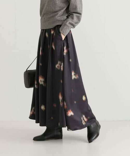 ぼかしを入れた花柄がアーティスティックな一着で、動きのでるフレアシルエットがスタイリングに華やかさをプラスします。