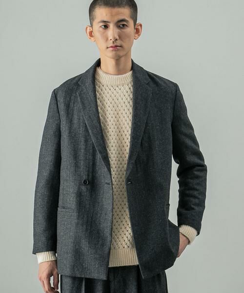 【その他】クラシックな印象のダブルジャケットなので、下は無難にスラックス・革靴と綺麗めカジュアルコーデに仕立てたいと思える主役の1着です。