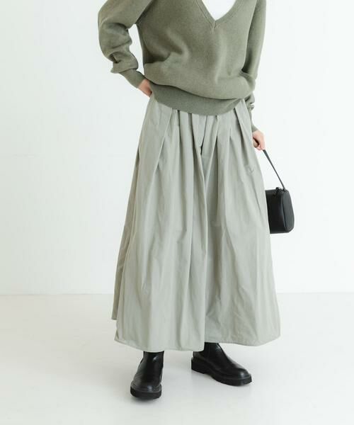 ボリュームのあるデザインながらも、さらっとした艶のある素材が軽やかな印象に。程よい光沢が上品なタフタスカートは、シーズンを問わず活躍する定番アイテムです。