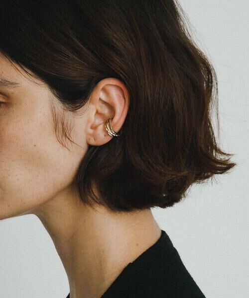 4連のクロスラインとツイストデザインがアクセントになるイヤーカフ。