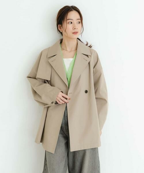 軽やかなミドル丈のトレンチコートは、余分な装飾を省いたシンプルなデザインながら、ゆったりとしたテントシルエットが特徴的な1枚です。