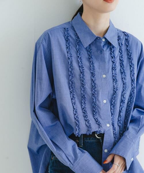 細かくギャザーを寄せたフリルをフロントに施した、着映えブラウス。綺麗になり過ぎないように柔軟洗いをかけ、生地の表面にシボ感を加えることで、ヴィンテージのような風合いに仕上げました。シンプルなスラックスを合わせたり、袖を折ってアクセサリーを重ね付けしたりと、大人っぽいスタイリングを楽しんでいただけます。POINT・着心地の良い綿素材・羽織使いのできる前開きデザイン・ゆとりのあるシルエット【2025 Spring/Summer】【25SS】※商品画像は、光の当たり具合やパソコンなどの閲覧環境により、実際の色味と異なって見える場合がございます。予めご了承ください。※商品の色味の目安は、商品単体の画像をご参照ください。▼お気に入り登録のおすすめ▼お気に入り登録商品は、マイページにて現在の価格情報や在庫状況の確認が可能です。お買い物リストの管理に是非ご利用下さい。