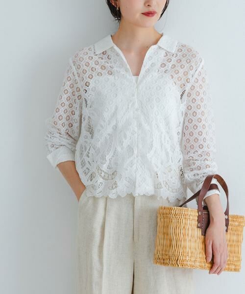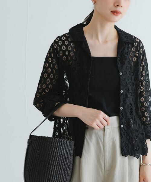 シーズンムードたっぷりな、華やかな柄のインドレースを使用したシャツ。