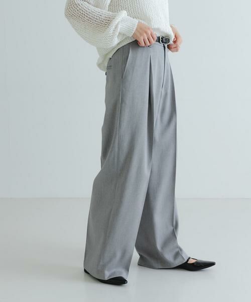 アーバンリサーチが開発した機能性素材で仕立てた上品なツイード調のパンツは、腰回りにゆとりを持たせたワンタックと、ワイドなストレートシルエットが特徴です。