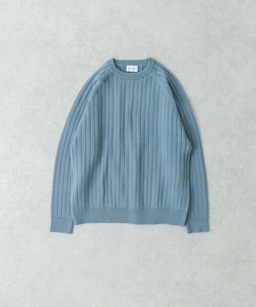 ・ラグランスリーブでベーシックなサイズ感、リブ編みですっきりした印象に