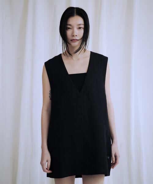 深めのVネックが大人の抜け感を演出するベストは、太番手の糸で甘く織られたリネン素材を使用しており、これからの季節にぴったりのアイテム。