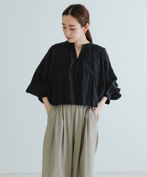 UR TECH ギャザーワイドパンツ(URA5-24C015)など、ボリュームのあるボトムスとのスタイリングがおすすめです。