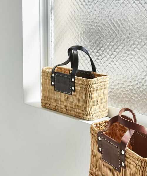 ナチュラルな雰囲気にレザーのハンドルが、洗練された印象に。