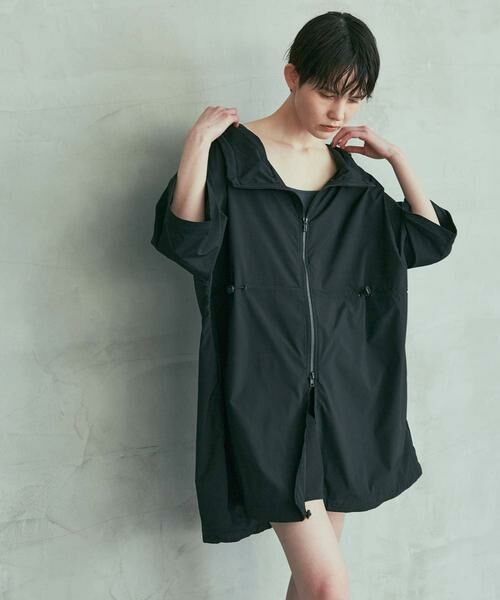 袖にはファスナーがついており、取り外しも可能。用途や気分に合わせて、違った印象で着用できます。また、裾とウエストのドロストコードをしぼると、シルエットの変化を楽しめます。