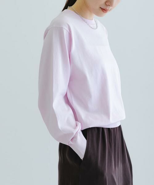 さらっとした肌触りと微細な光沢感が特徴のクルーネックニットは、程よいサイズ感で、袖にボリュームを持たせてアクセントを加えています。