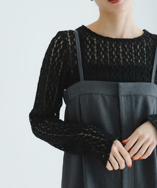 ジャケットや、オールインワンのインナーとして活躍。スウェットなどとレイヤードし、袖口からレースをのぞかせて着用するのもおすすめです。