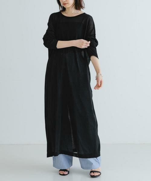綿ポリエステルのUVカット加工を施した糸で作られたニットワンピース。