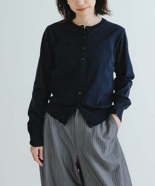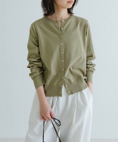 細い番手の糸を、細かい編み目で密に編み立てた上品な印象のクルーネックカーディガン。