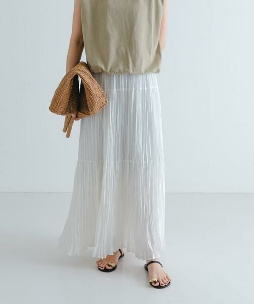 シルクのような微光沢と繊細な透け感が魅力のスカート。