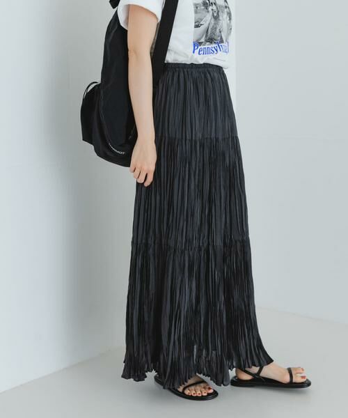 細かいワッシャープリーツが施されており、動きに合わせて美しいシルエットを演出します。