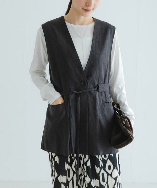 ボタンをとめてベルトを巻き、トップスのように着用するのがおすすめ。インナーを変えれば春から夏まで、長く着ていただけます。