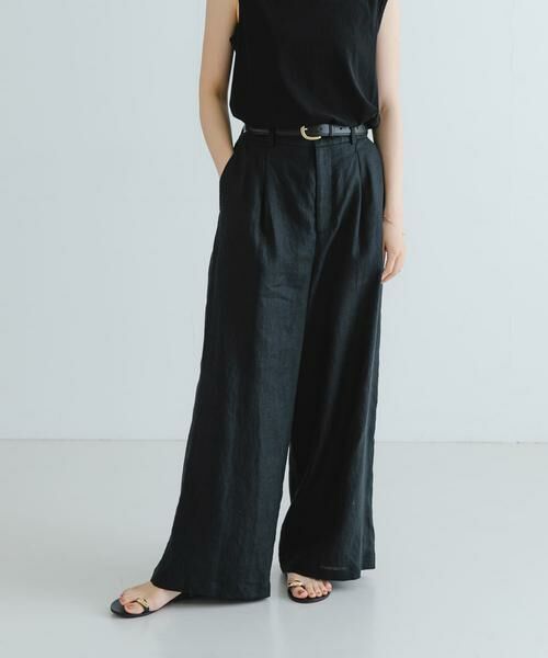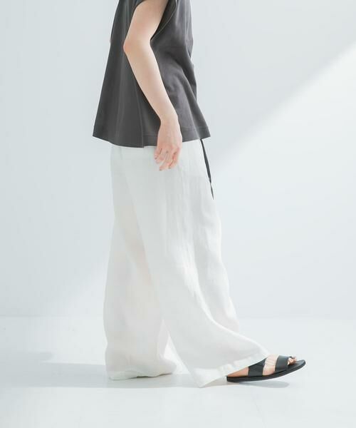 爽やかな印象をもたらすリネン100%のワイドパンツ。