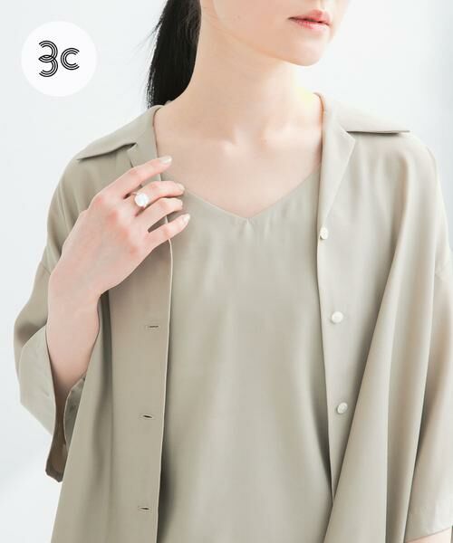 シアーシャツを羽織り、スラックスやデニムと合わせてカジュアルダウンしたスタイルがおすすめ。同素材でキュプラオープンカラーシャツ(URA5-23L010)もございます。